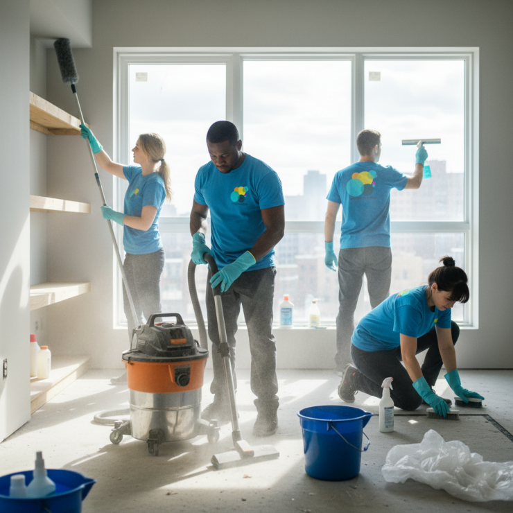 Finishing a construction or renovation project leaves behind dust, debris, and a need for a professional touch. Our **Post-Construction Cleaning** services are specifically designed to transform your building site into a spotless, ready-to-use space, safely and efficiently removing all traces of construction.
